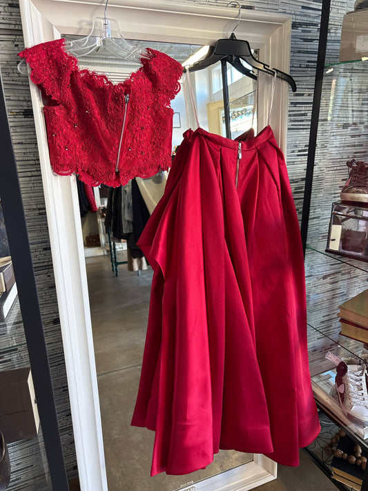 SHERRI HILL Size 4 Red Lace Formal Two Piece