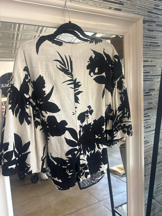 ZARA Size XS B&W Floral Top