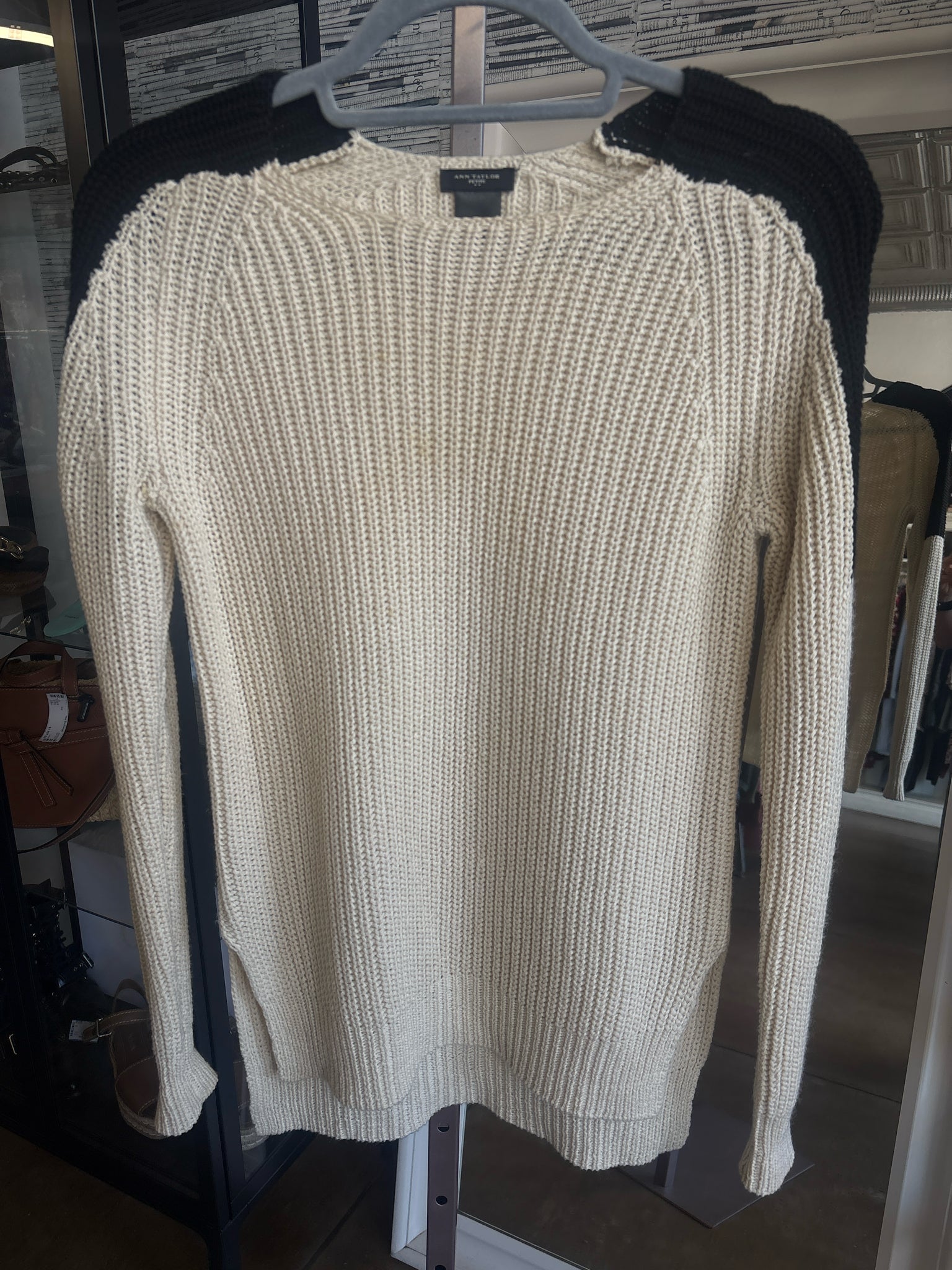 ANN TAYLOR Size SP Cream/Black Knit Sweater